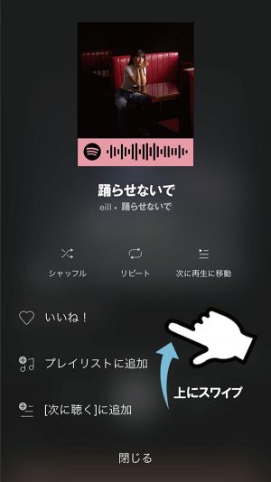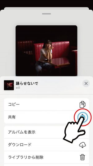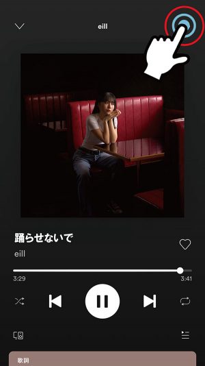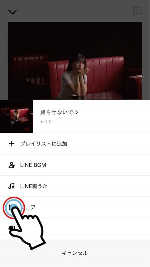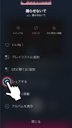 3. 再生中ページ、アーティスト名右横の「…」マークから「シェアする」を選択