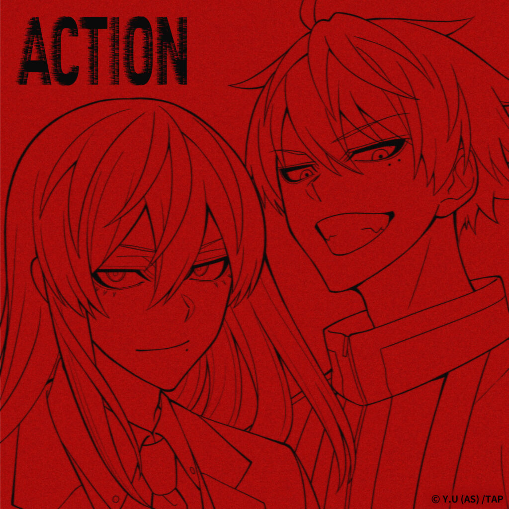 一ノ瀬四季と桃寺神門が線画で描かれた「ACTION」のジャケ写限定の絵柄となっています。